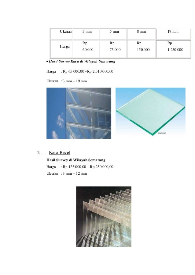 Berikut beberapa jenis kaca tersebut lengkap dengan daftar harganya.