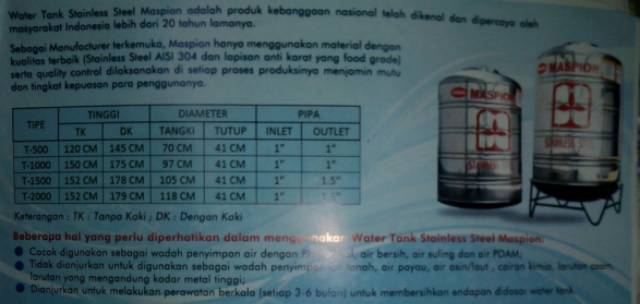 Harga Tandon Air Stainless Steel Maspion : Toba Mas Maspion Group Industries Medan Cekinfo Com Sumber Informasi Anda Cek Info Semua Bisnis Dengan Cepat Dan Mudah. Keuntungan dari menggunakan tandon stainless steel antara lain adalah anti karat, anti jamur, anti lumut sehingga masa tangki air akan lebih tahan lama. Tangki air rumah memang sangat dibutuhkan di era modern seperti ini, untuk itu dalam memilih tangki air yang diprioritasklan adalah kualitasnya, tangki air penguin adalah salah satu yang sudah teruji kualitas, dan juga. Pt abadi metal utama menjual tandon air pvc , tandon air stainless steel, tandon air fiberglass, tandon air septitank dengan berbagai merk seperti vepo, penguin, profil tank, jumbo ,biolux guard rail. Tangki air stainless merk tirta ini menjadi rekomendasi pertama, karena merk ini telah banyak dikenal masyarakat. Toren air stainless steel maspion kami menyediakan water tank, tandon air,tangki air stainless steel maspion untuk digunakan di gedung bertingkat, hotel, restoran,universitas, apartemen,rumah sakit dan gedung olah raga, dengan ukuran mulai dari t700/500 ,t970/1000, t1050/1500, t1180/2000 untuk tanpa kaki maupun pakai kak ;